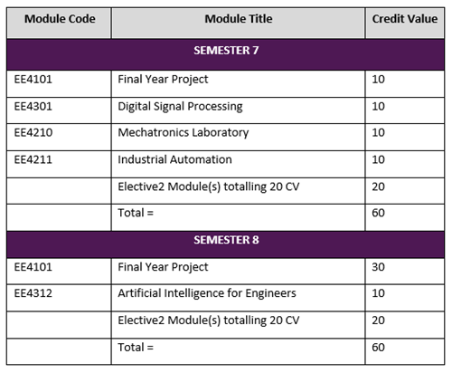 Note: List of elective modules offered in each semester is subject to change based on availability of resources and number of students