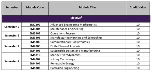 Note: List of elective modules offered in each semester is subject to change based on availability of resources and number of students.