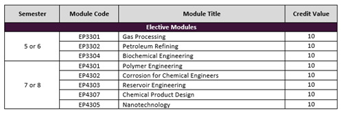 Note: List of elective modules offered in each semester is subject to change based on availability of resources and number of students