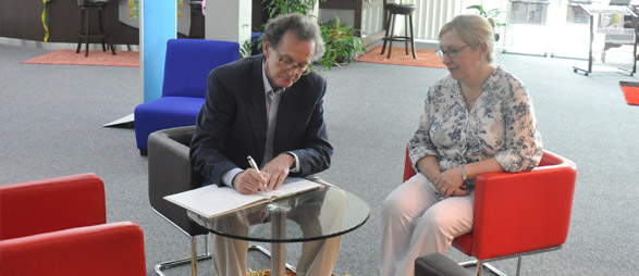 Mr Glyn Jones, from Elsevier (Oxford) and Dr Melinda Taylor from University of Southampton made a visit to the University Library on 7 August 2014. The purpose of the visit was to tour the Library and meet the Librarian. They were welcomed and briefed by Awang Osman Haji Suhaile, Library Officer.