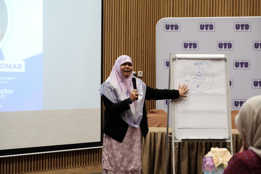 The talk was conducted by a guest speaker from Brunei Shell Petroleum Company Sdn Bhd (BSP), Yang Mulia Dayang Hajah Zainab bin Omar, the Human Resource Director.