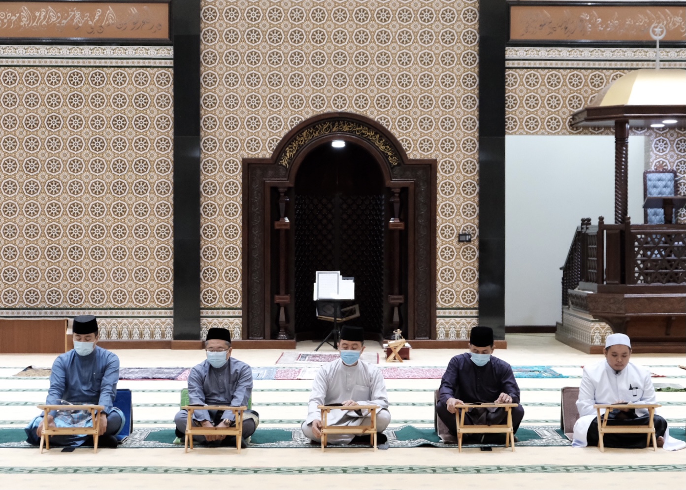 The ceremony commenced with the mass Maghrib and Sunat Hajat prayer led by Yang Mulia Mohammad Amirul Rahmad bin Haji Mohammad, Mosque Affairs Officer followed by the mass recitation of Surah Yassin and Doa Kesyukuran. The ceremony concluded with the mass Isya prayer.