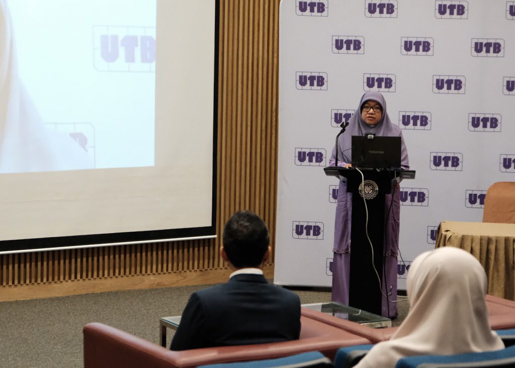 The event then proceeded with a remark by the Guest of Honour, where she highlighted that Peat swamp forests are the second most dominant forest type in Brunei and rich with species of plants and animals but it is still facing threats due to development, peat drainage and fires. She also stressed that the impacts of these threats to the peatland can be seen in the changes of climate, and drained peatland also increases the chances of peat fires thus releasing a huge amount of greenhouse gases. “UTB hopes to play a role in helping to mitigate such issue and to provide a solution in conserving the peatland ecosystem in Brunei through cross-cutting research projects that involve technology and biology.”